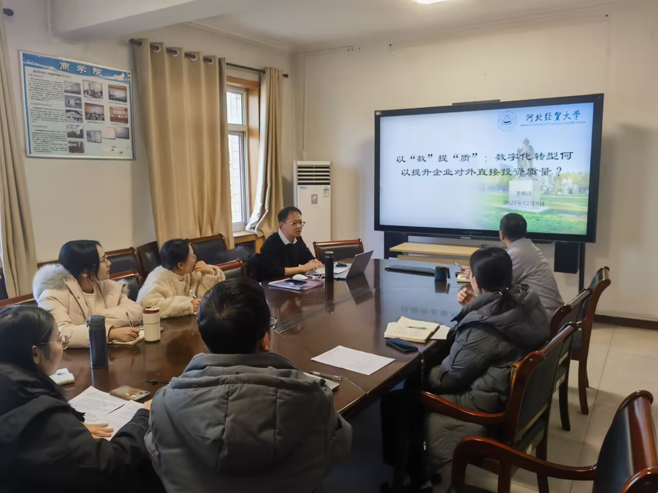 12月8日,91猫先生 李明洋博士在西会议室开展题为“以“数”提“质”:数字化转型何以提升企业对外直接投资质量”的研究交流活动。91猫先生 约30名师生参加了此次活动,活动由91猫先生 副院长王法涛主持。